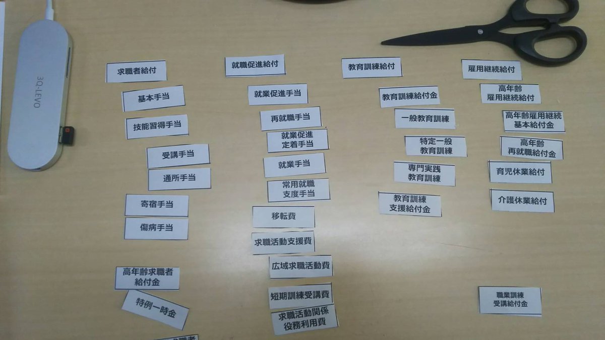このパズルは失業等給付の体系図の並び替え練習につかいます。