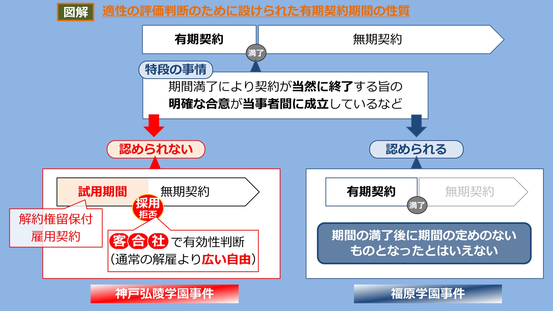 使用者が労働者を新規に採用するに当たり、その雇用契約に期間を設けた場合において、その設けた趣旨・目的が労働者の適性を評価・判断するためのものであるときは、(略)当該期間は契約の存続期間ではなく【?】であると解するのが相当である。