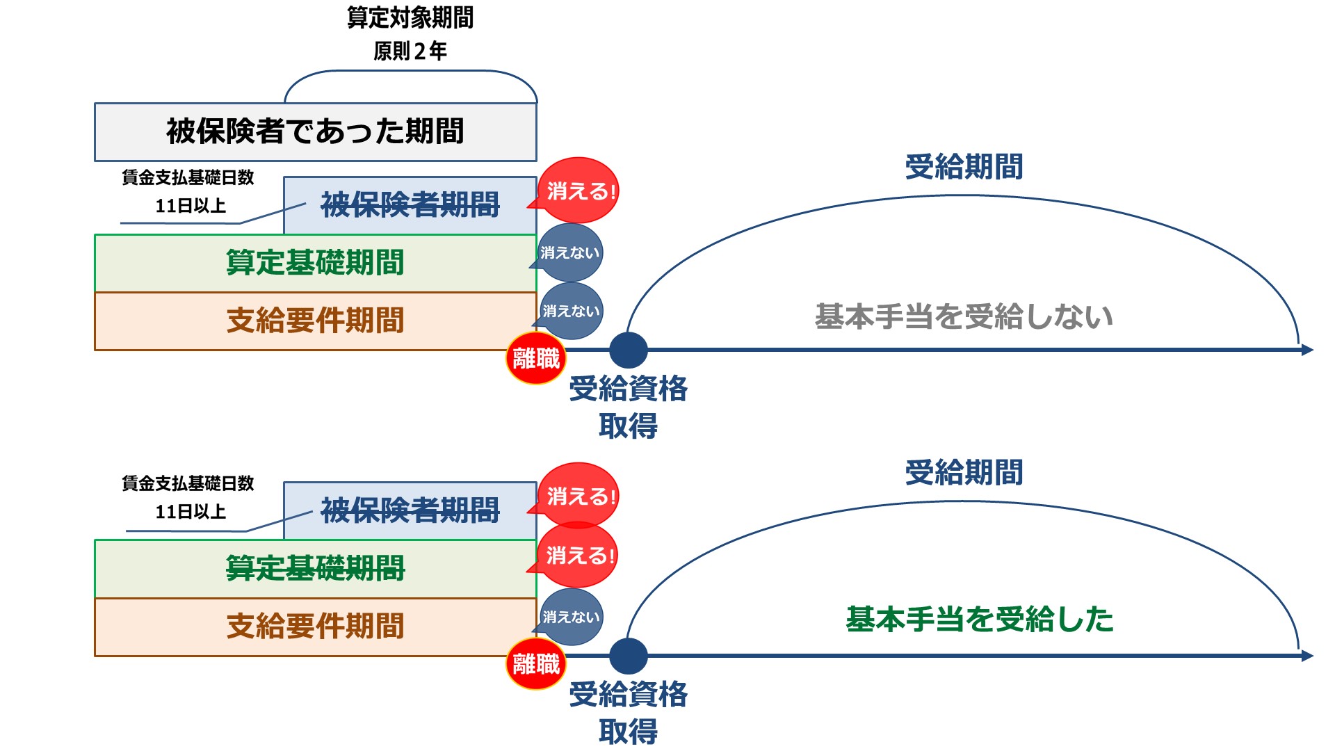 被保険者期間・算定基礎期間・支給要件期間