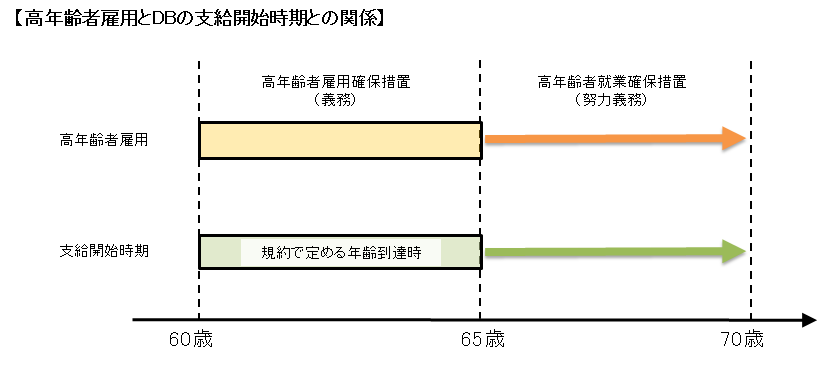 確定給付企業年金(DB)については、一般的な定年年齢を踏まえ、これまでは60歳から65歳の間で労使合意に基づく規約において支給開始時期を設定することができた。