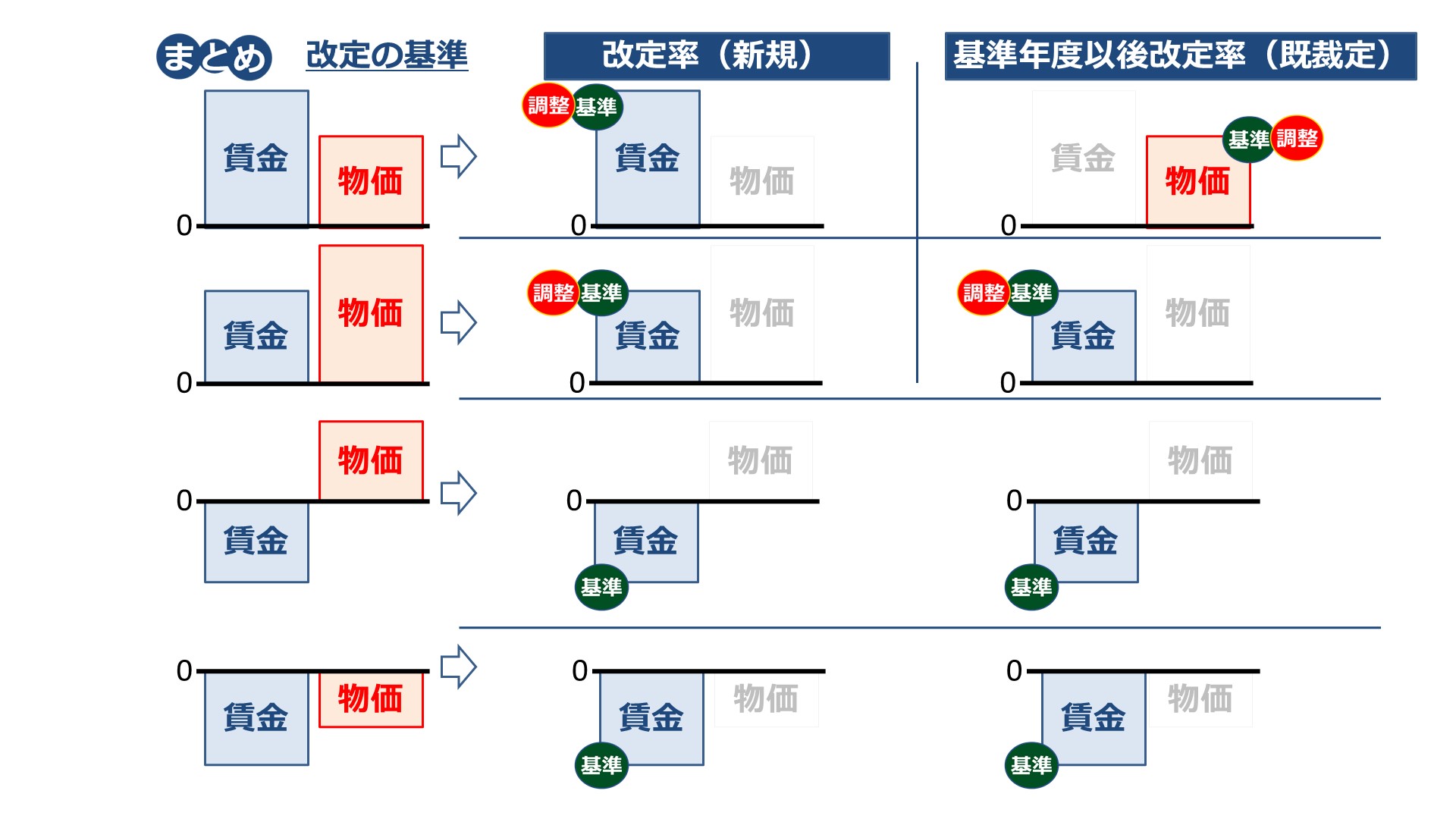 従来、賃金が物価ほどに上昇しない場合には、物価変動ではなく賃金変動に合わせて年金額を改定するルールが導入されていたが、受給者への影響を考慮した例外的な取り扱いとして、賃金と物価がともにマイナスで賃金が物価を下回る場合には、物価に合わせて年金額を改定し、また、賃金のみマイナスの場合には、年金額を据え置くこととしていた。