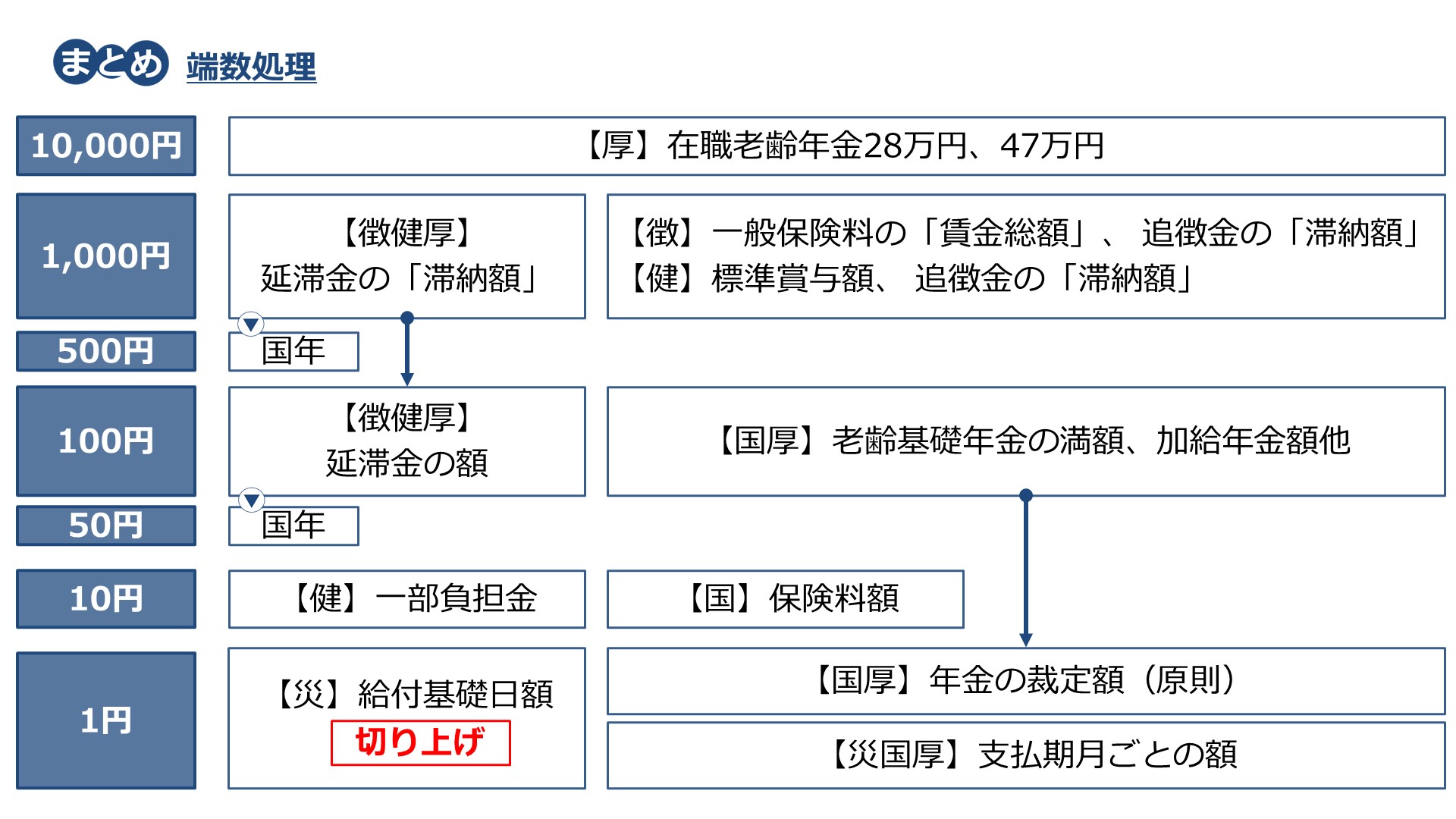 端数処理上、「切り上げる」「四捨五入」「切り捨てる」のうち、「切り上げ」るものは何?