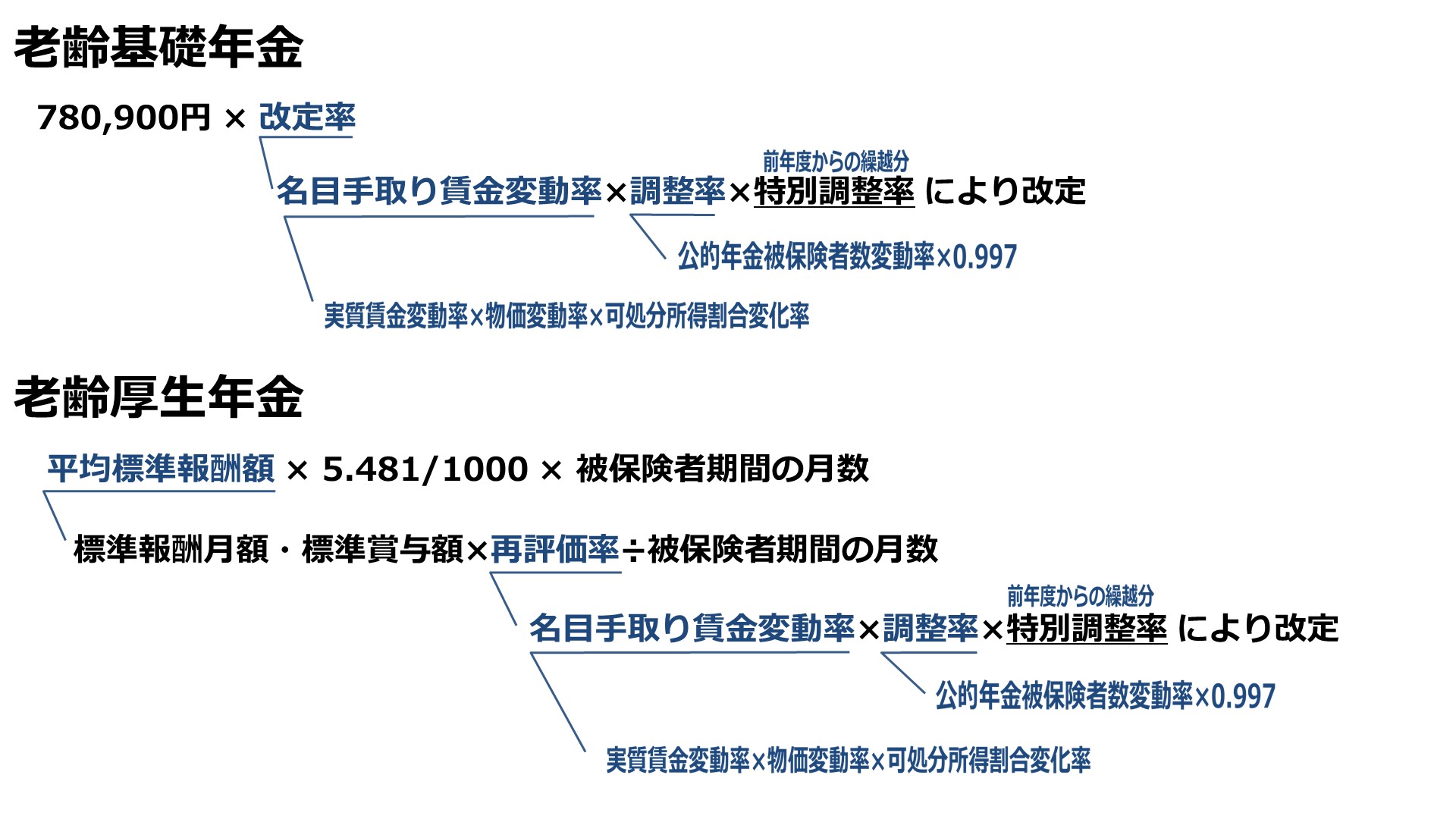 ・改定率→年金法定額”○○円”に乗じるもの