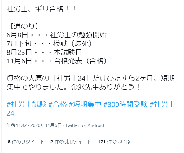 【Twitter】6月から勉強開始で合格された方など