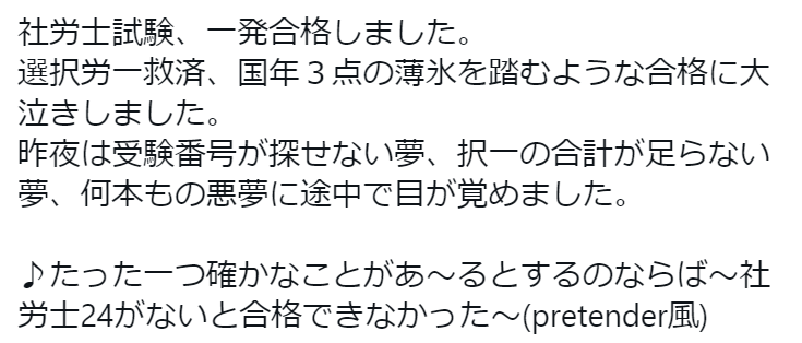 一発合格された方のツイートです。