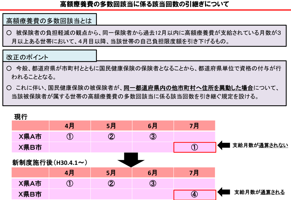 従来は市区町村をまたぐと多数回該当の回数がリセットされていたのが、改正で通算されるようになります。