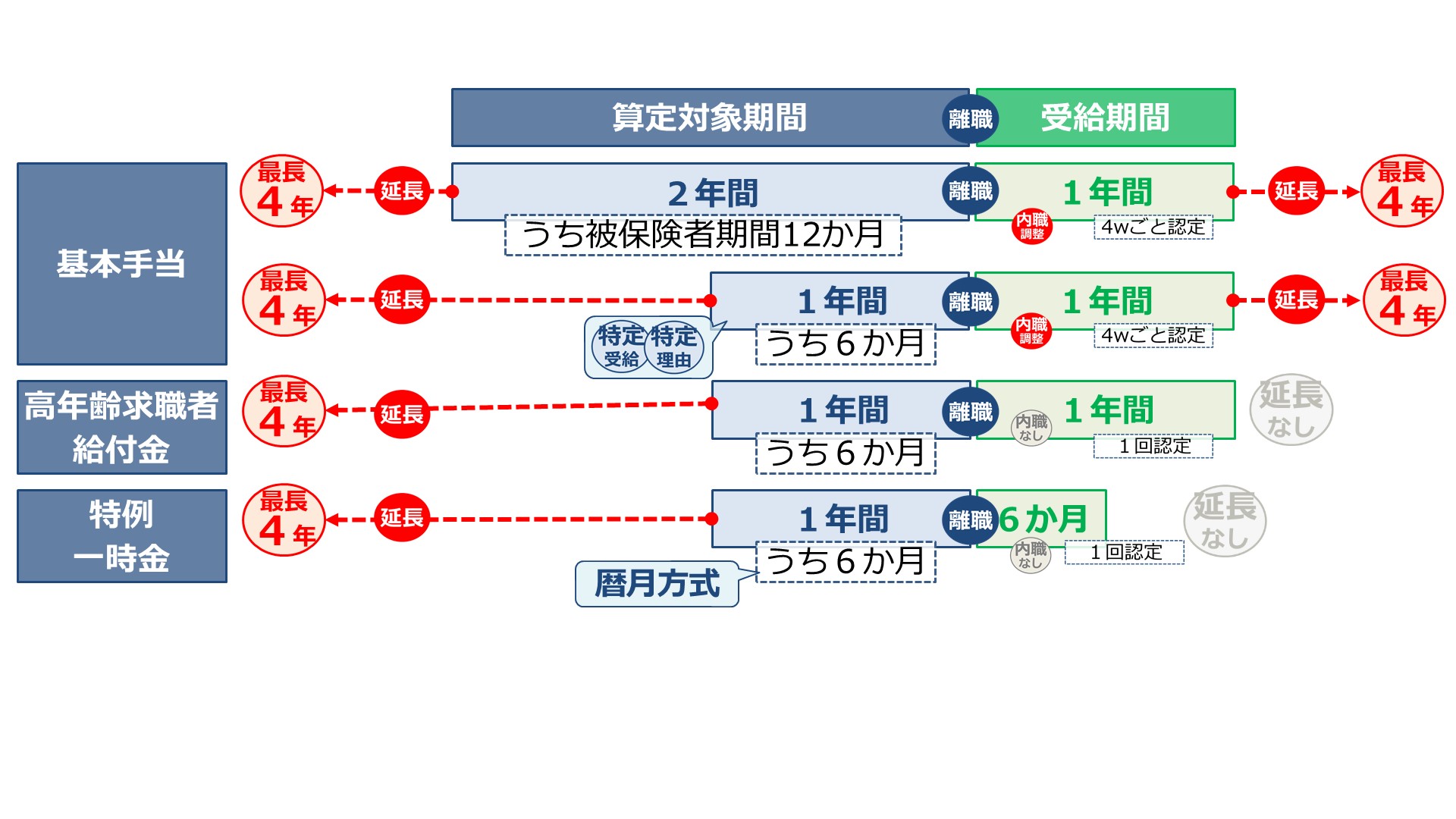 ・受給期限1年→基本手当、高年齢求職者給付金。