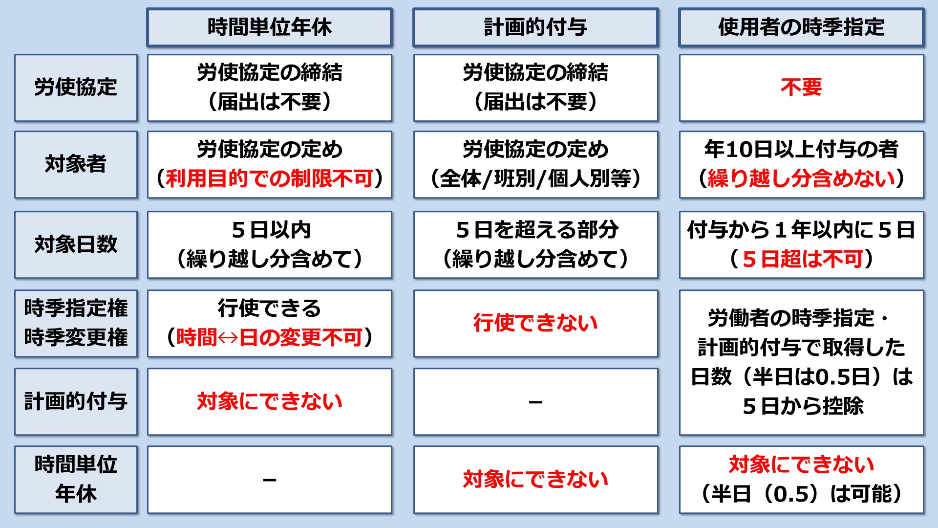 - 年次有給休暇の時間単位での取得は、労働者の多様な事情・希望に沿いながら年次有給休暇の消化率を高める効果を持ち得るものであるため、年5日(10日×)の範囲内で認められている。