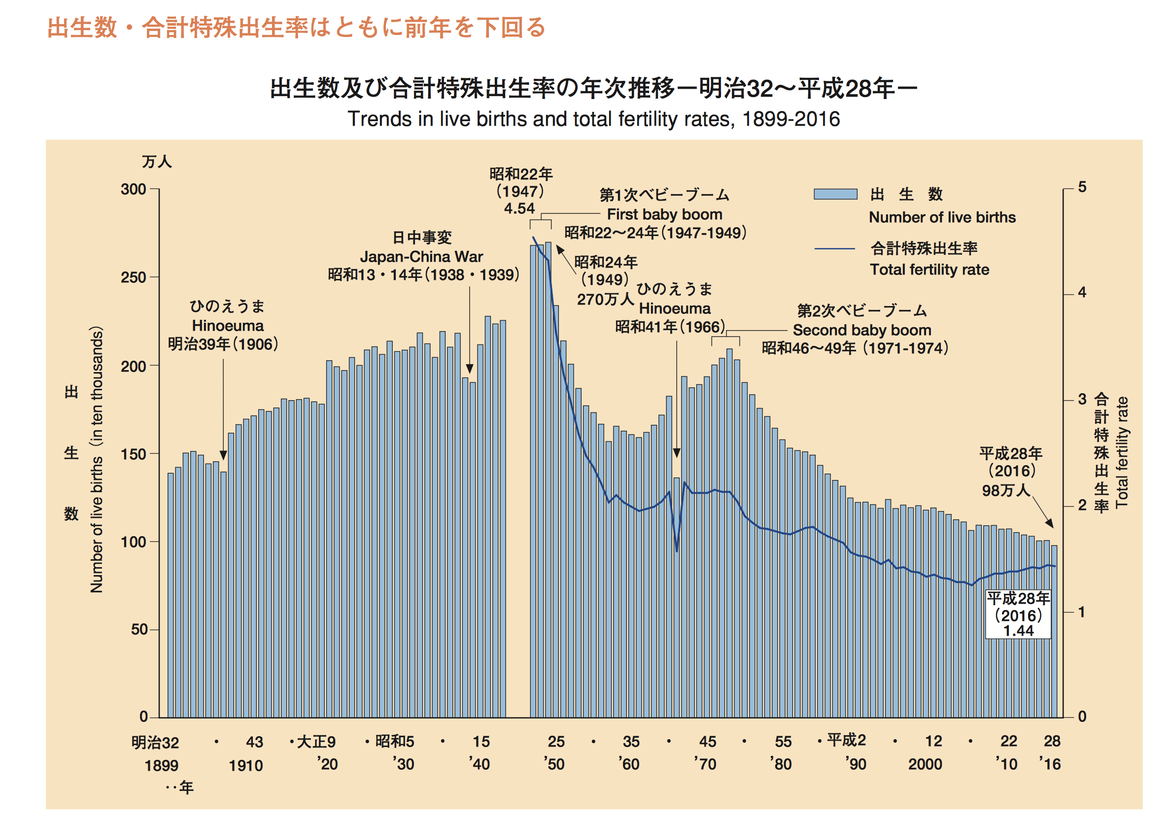 平成28年の合計特殊出生率は【?】で前年の1.45を下回った。