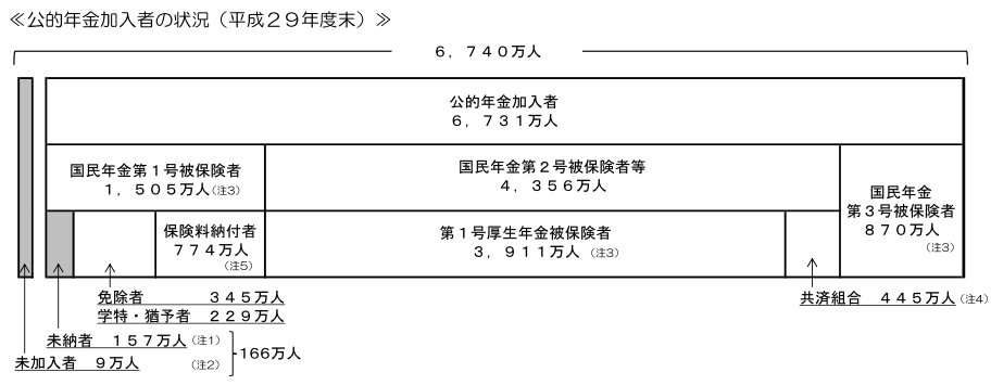 ・公的年金被保険者6,700万人。ざっくり総人口の半分