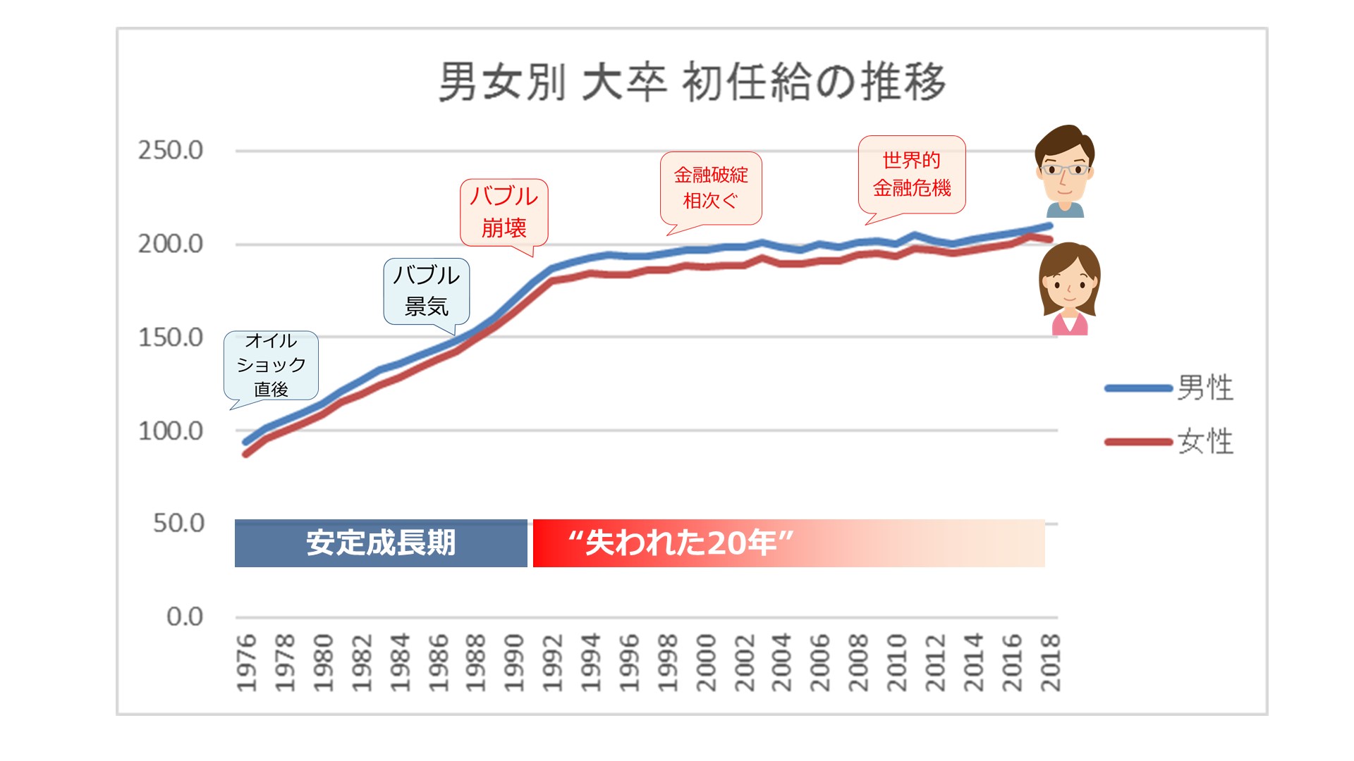 大卒初任給、バブル崩壊後の動き(正解率37%)