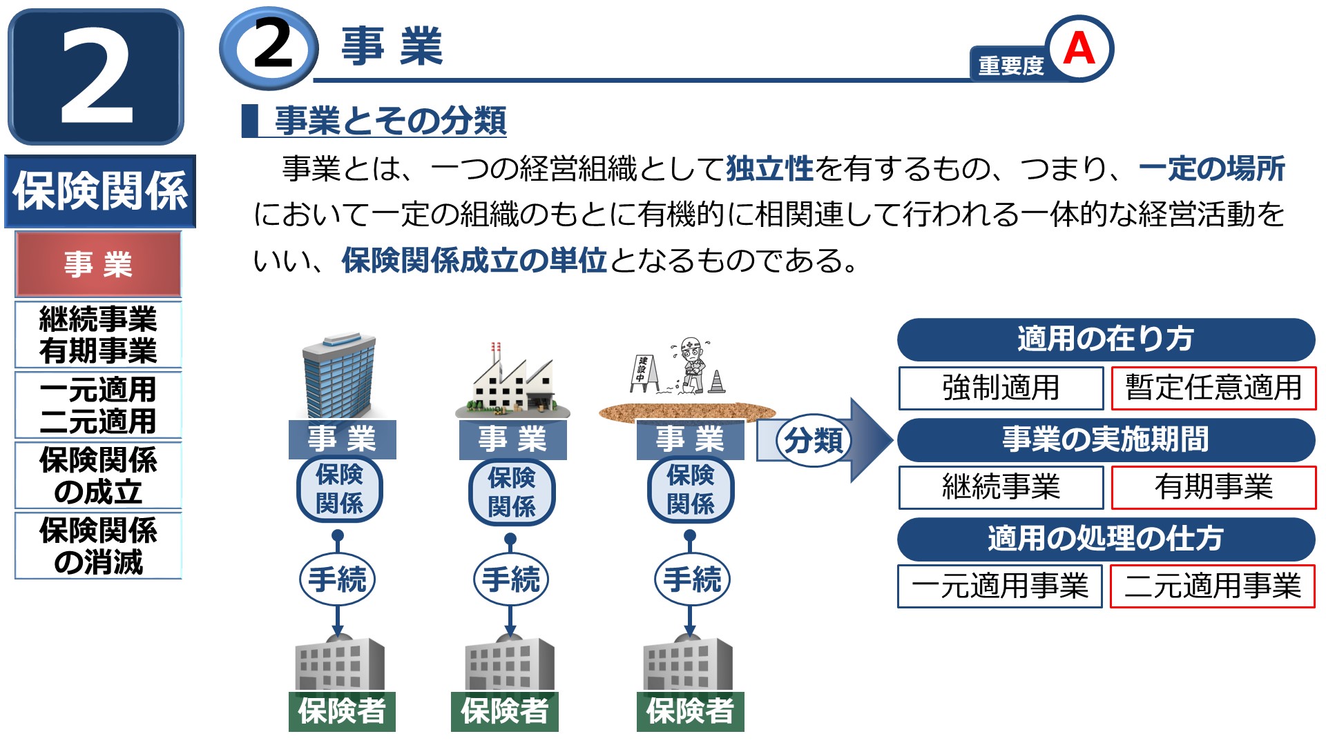 したがって、保険関係の成立の届出や保険料の申告手続きも、事業ごとに行う必要があります。