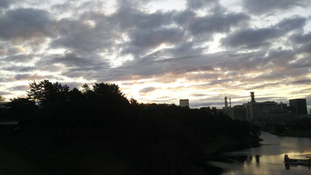 今朝は雲が多かったために、お日様が昇った後も当初雲に隠れて姿を見せていませんでした。