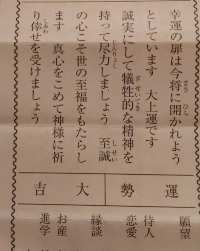 そして、初日の出のあとの初詣で引いたおみくじは”大上運×大吉”。