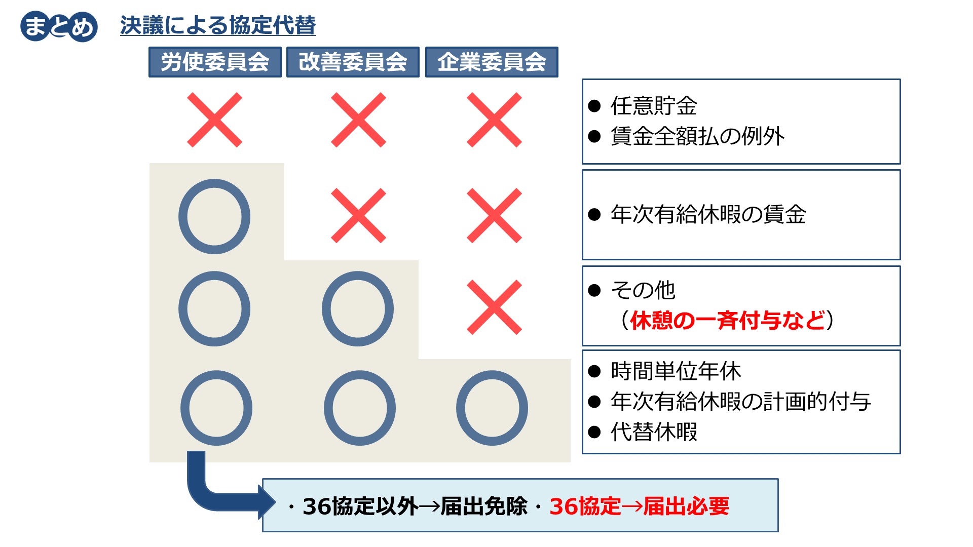 ・労働時間等設定改善企業委員会の決議による代替が不可