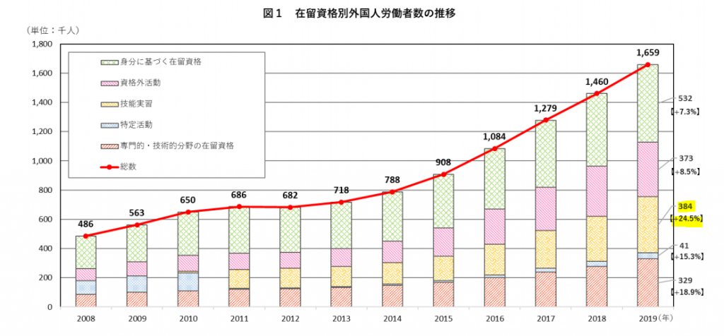 外国人労働者数は約166万人。届出義務化以降、過去最高を更新。