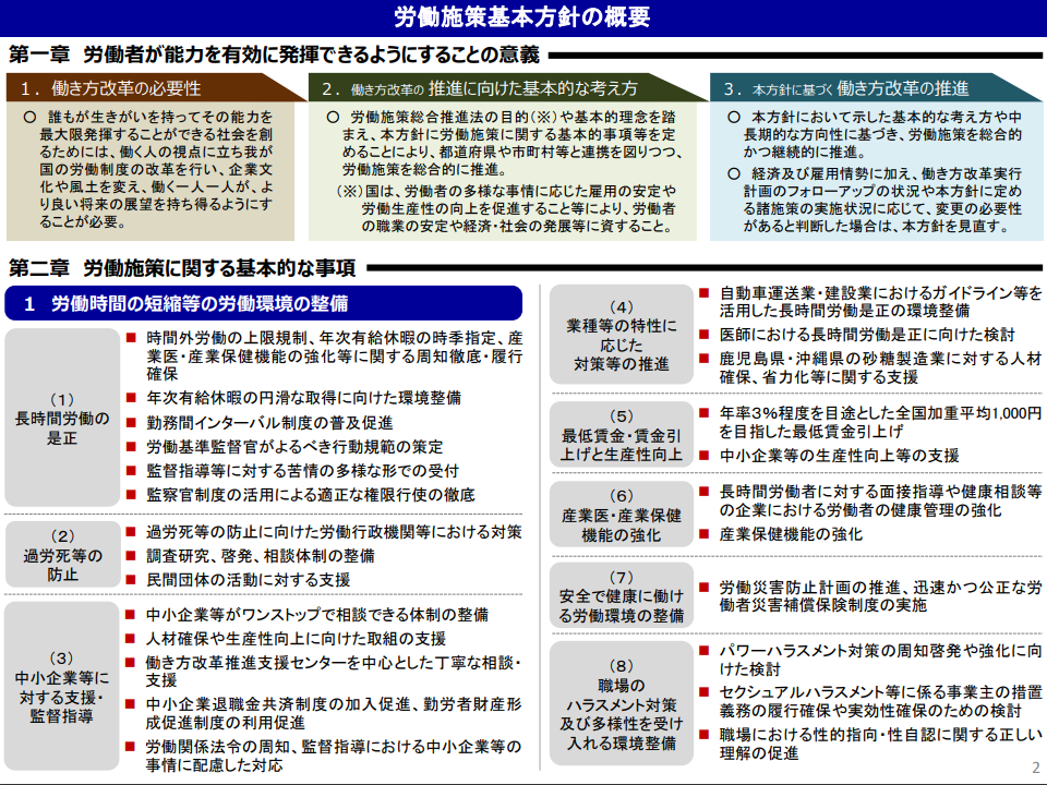 本方針は、同項の規定に基づき、働き方改革の意義やその趣旨を踏まえた国の施策に関する基本的な事項等について示すものである。