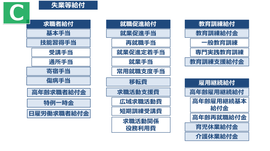 最終的に残ったCが最も正しい失業等給付の体系図となります。