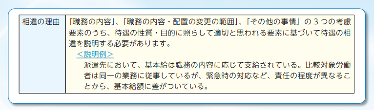比較対象労働者との間の待遇の相違の内容及び理由について説明する必要があります。具体的には、図表 2-8 に示す事項を説明してください。